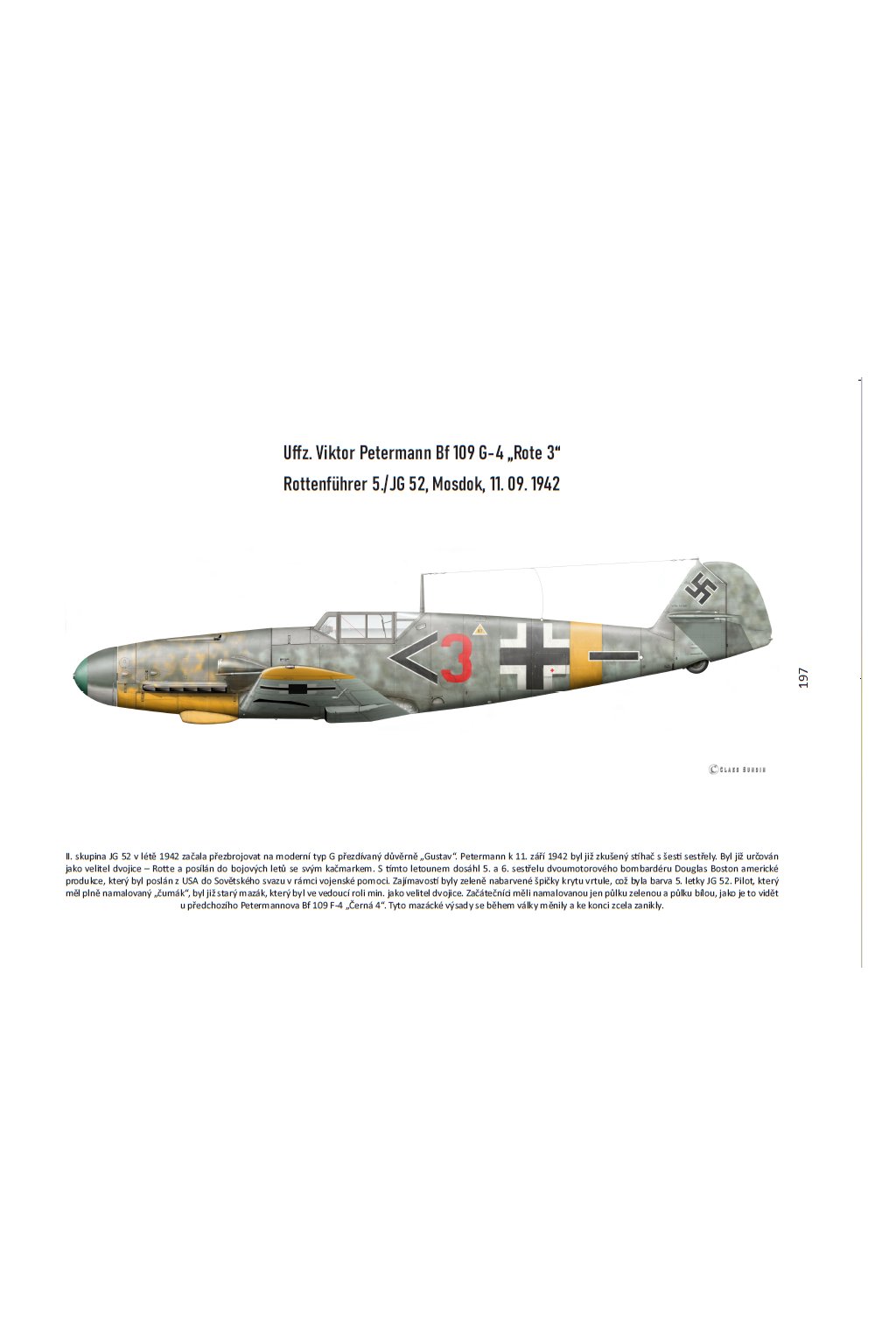 Kniha mapuje válečný osud stíhacího esa Viktora Petermanna, který se narodil horském městě Vejprty v Krušných horách. Jeho osobní vyprávění o zážitcích během služby u slavné stíhací eskadry 52, je doplněno o faktické informace nejen o této eskadře, ale i druhé a třetí skupině, ve které létal. Součástí je bohatá galerie fotografií z osobního archivu tohoto stíhače, ale i Jagdgeschwader 52, doplněné bokorysy světově známého grafika Claese Sundina ze Švédska.